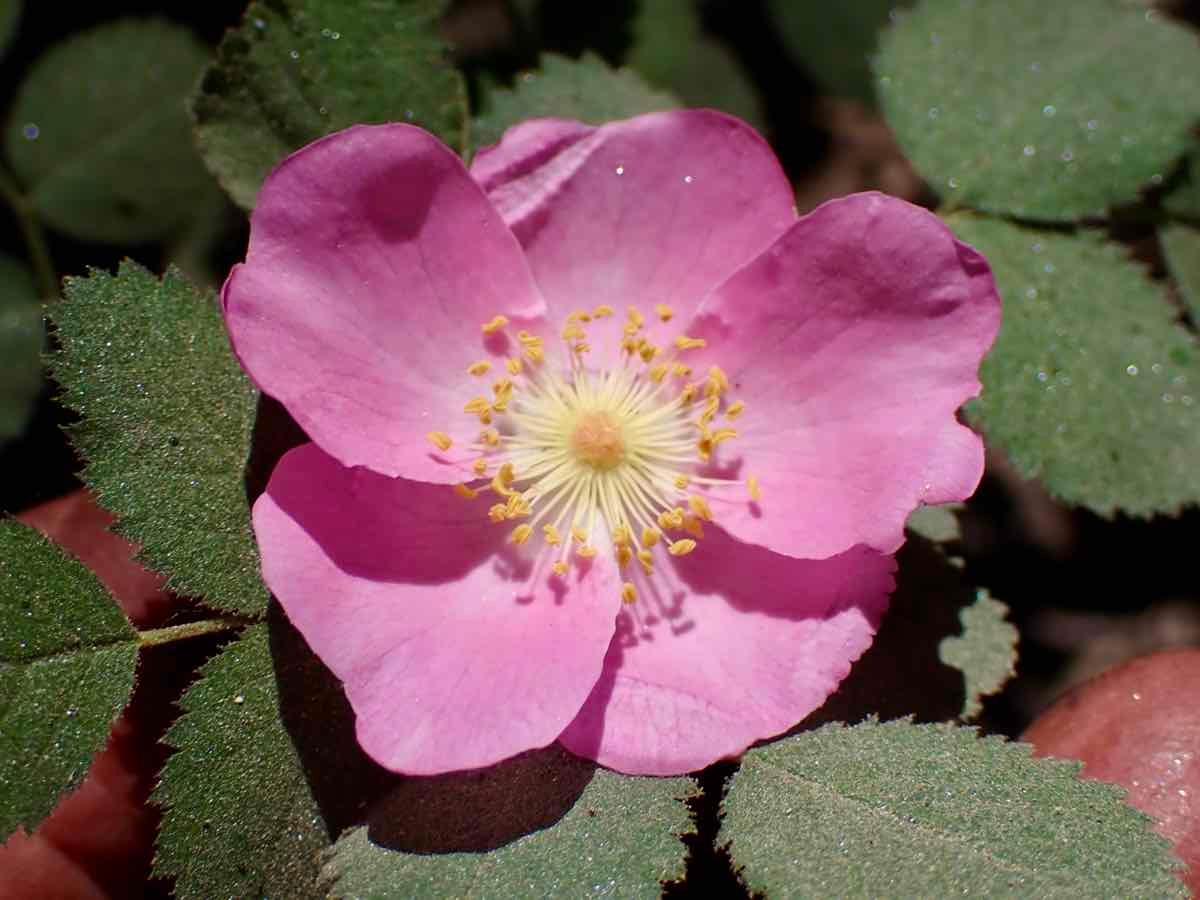 Deciduous shrubs with thorned stems, pinnate leaves, and fragrant flowers ranging in color from white to deep red. Flowers consist of five petals in wild species and multiple petals in cultivated varieties. After flowering, roses produce an oval to round red-orange hip rich in seeds and vitamins.